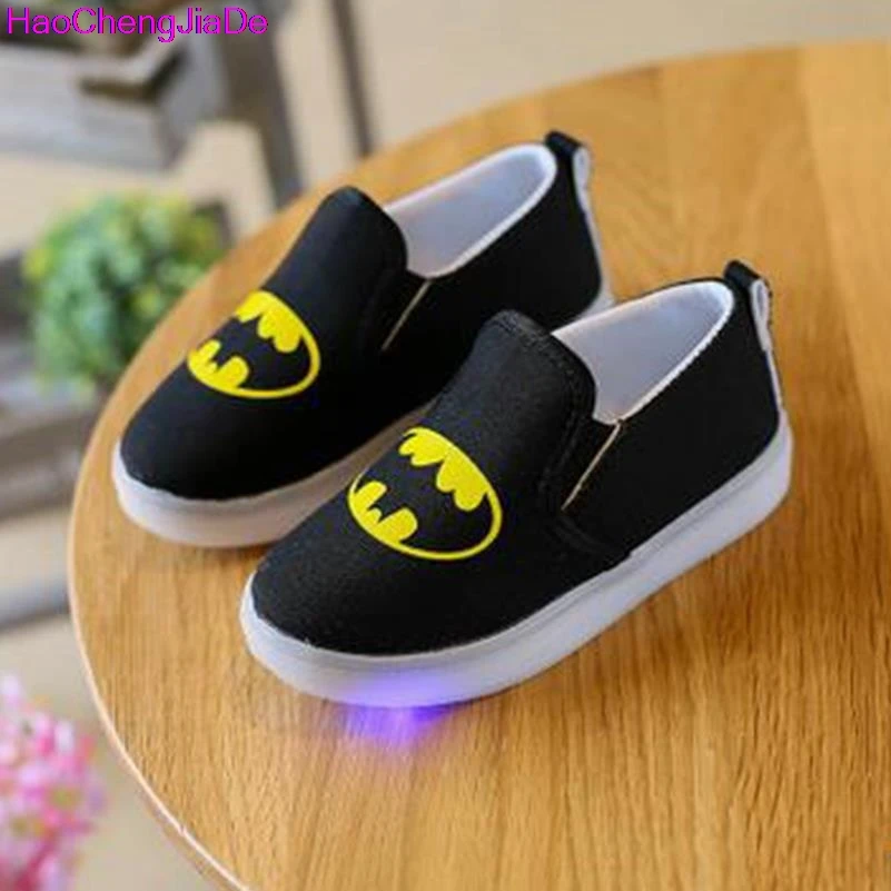 معرض ل HaoChengJiaDe الفتيات سبايدرمان الأطفال الأحذية مع ضوء طفل أحذية رياضية من قماش القنب أطفال أحذية لل بنين بنات Chaussure Enfant 046A