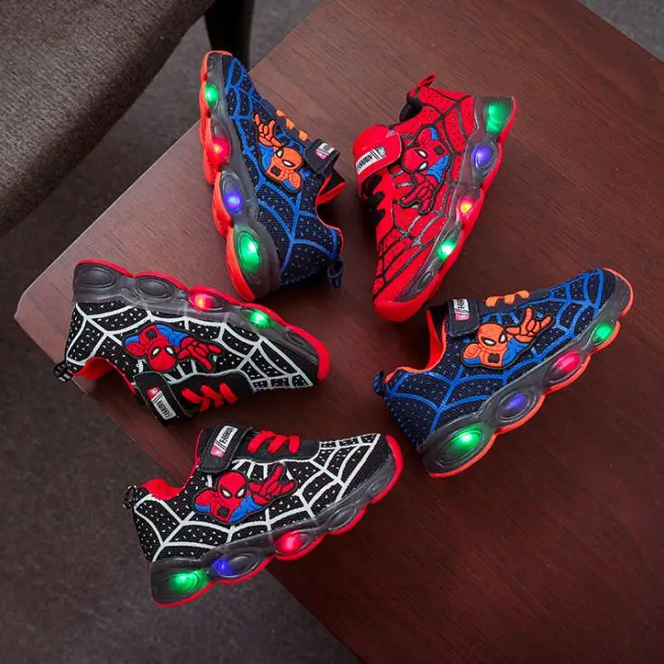الكرتون سبايدرمان الاطفال أحذية مضيئة مصباح Led متوهج الأطفال مضاءة Led الطفل الاطفال رياضية شبكة أحذية رياضية الاتحاد الأوروبي 21-30