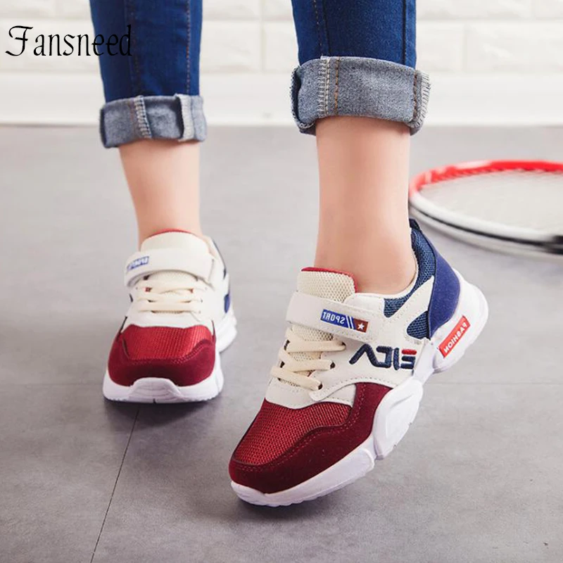 شراءمعلومات اضافية 2019 ربيع جديد صبي تنفس اللون مطابقة رياضية الأطفال احذية الجري الفتيات شبكة تنفس أحذية رياضية