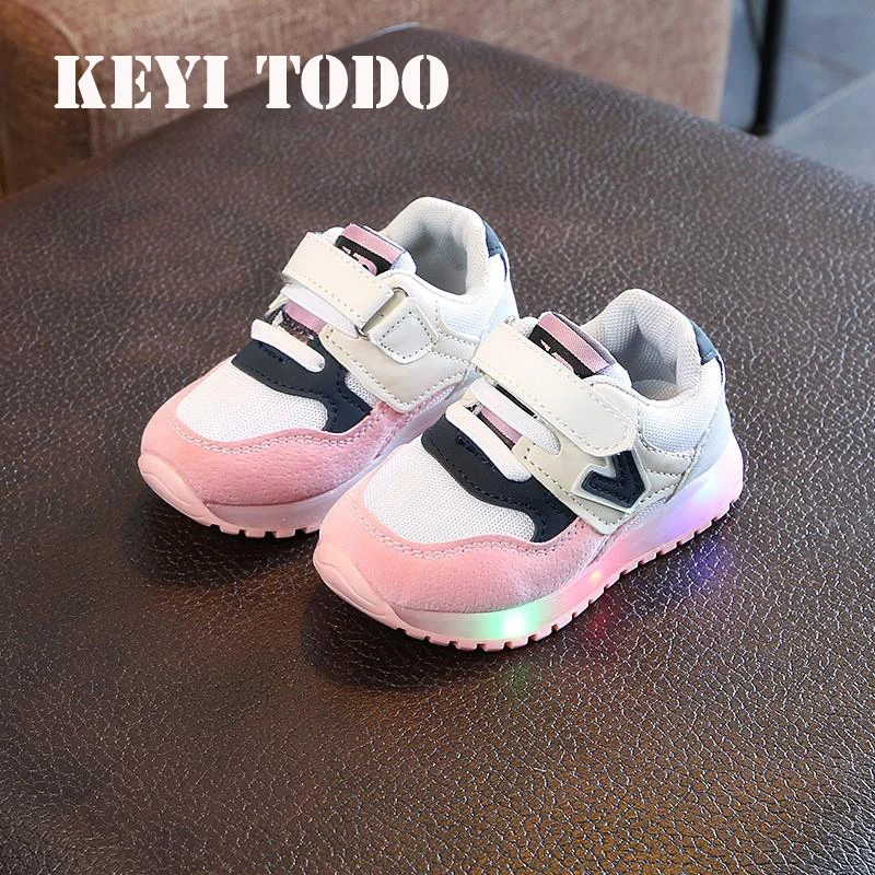وانت porشراء Children Shoes, entonces KEYITODO جديد العلامة التجارية الأزياء LED الاطفال رياضية للبنين بنات أحذية الربيع/الخريف متوهجة بارد عارضة الطفل الأطفال الأحذية c488 es posible poner love