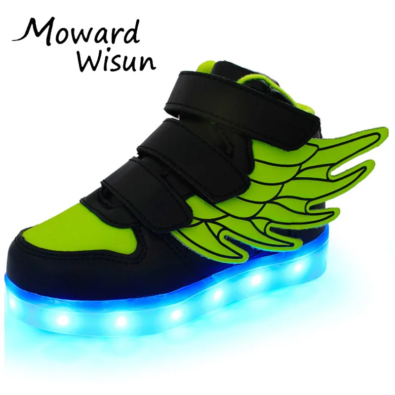 استعارات من الأطفال LED أحذية سلال الفتيان الفتيات متوهجة مضيئة Neakers مع ضوء وحيد الشقي الاطفال تضيء رياضية الصمام النعال 30